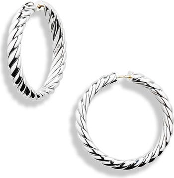 Crafted from polished sterling silver, these twisty, artfully sculpted hoop earrings will lend just-right gleam to your looks.
