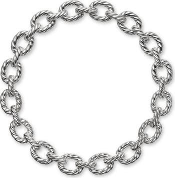The label's signature spiraling cable texture distinguishes the chunky oval links that comprise this striking chain necklace.