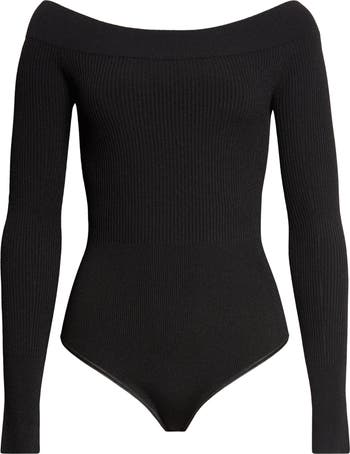 This seamless bodysuit is made in a sculpting rib knit with a curve-hugging body-con fit for a sleek look, while the classically elegant off-the-shoulder neckline highlights your collarbones.