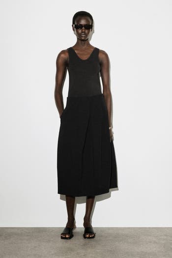 This modern midi skirt is crafted from double-knit jersey to create a sculptural, tulip silhouette. It comes in an enduring black tone and features an elasticated waist, shaped darts and discreet side pockets.