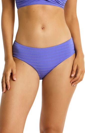 Powermesh support in the front and the back means you'll feel your best all day long in these striped mid-rise bikini bottoms.