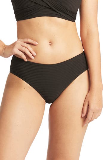 Mid-rise bikini bottoms offer tonal texture and are made with powermesh support.