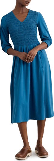 A smocked bodice gives a perfect fit to every wear of this midi dress made from organic-cotton jersey that's soft, stretchy and easy to wear no matter where the day takes you.