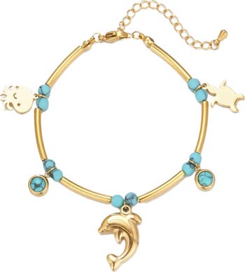 Dive into coastal elegance with this gold-plated ocean charm bracelet, designed for beach lovers and sea enthusiasts alike. Featuring a delicate mix of marine-inspired charms, this bracelet captures the beauty of the ocean in a stylish, wearable design.