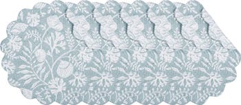 Transform your dining space into a breezy coastal retreat with the 17" Seafoam Reef Cotton Scalloped Round Placemats, Set of 6. Each placemat showcases a delicate interplay of coral, seashell, and seaweed motifs, weaving together an inviting nautical narrative that instantly refreshes any table. The scalloped edges provide a refined silhouette, setting these mats apart from ordinary, straight-cut styles and imbuing your meals with a sophisticated yet relaxed beach-house vibe. Crafted from soft cotton, these placemats protect surfaces from spills, scratches, and heat while offering a gentle texture under your dinnerware. Their vibrant seafoam hue brings a burst of seaside energy to your kitchen or dining room, seamlessly blending with existing color palettes—especially when paired with neutral linens or contrasting oceanic tones. Whether you’re hosting a casual brunch with friends, a tropical-themed dinner party, or a simple weeknight meal, these placemats add a layer of stylish charm and functionality. In addition to their decorative appeal, they’re delightfully low-maintenance. Simply toss them into your washing machine for a quick cleanup, allowing you to spend less time worrying about stains and more time savoring good company around the table.