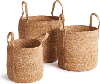 - Each piece measures: 14 x 14 x 19.75 12 x 12 x 16.5 10 x 10 x 14. Made of SEAGRASS Interior use only. Dust or gently clean with a damp cloth. Our highest priority is your happiness. We are confident you will love our products, but if you are not 100% satisfied, please contact us and our customer service team will work with you to make it right!