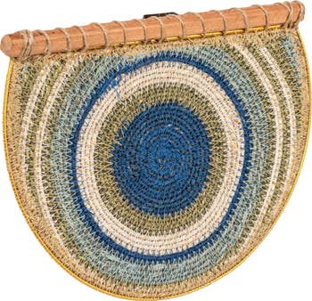 - A vibrant wall hanging decor featuring a half-moon design in multicolor seagrass