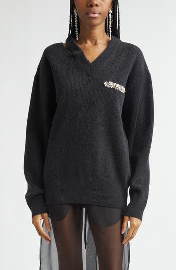 Seam Bite Embellished Virgin Wool Blend Sweater