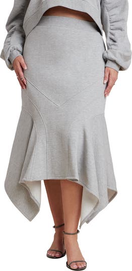 - Infuse relaxed drama to everyday dressing with this French terry midi skirt shaped by a sculptural trumpet hem. Seam detailing and soft stretch create fluid movement and endless comfort.