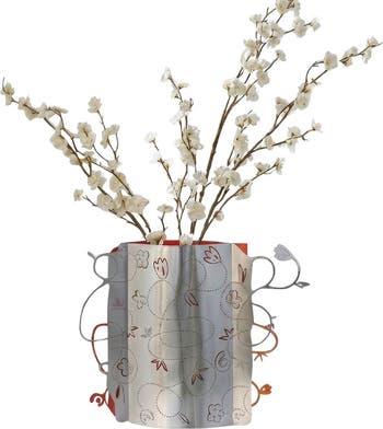 SEAM Vase explores the beauty of connection and transition, where surfaces meet and patterns continue across edges. Its sculptural metal body is wrapped with delicate, stitched-like graphics that trace imagined seams—suggesting repair, continuity, and the quiet labor behind making.