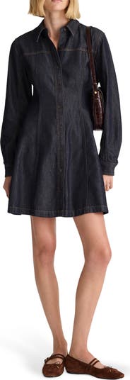 This soft and drapey Airy Denim mini shirtdress combines structure and ease, thanks to its tailored seaming and button-front design. Pleated cuffs with a keyhole detail add a thoughtful finishing touch, making it a piece that feels both polished and effortless.
