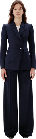 This jacket is exquisitely tailored with detailed seaming for a flattering, accentuated waist shape. Crafted in our seasonless, ethically-sourced wool, it can be worn as a separate, or go for a full look with our Wide Leg Suit Pant or Relaxed Wide Leg Pant. We have visited our wool-supplying farms to ensure that their sheep are raised and sheared in exemplary conditions, free of the cruel practice of mulesing. The fibers for this garment come from a farm in New South Wales. The fabric is processed and finished in an Italian facility that runs on 100% renewable energy. The addition of elastane helps to improve strength and performance, helping to extend the garment's lifetime.