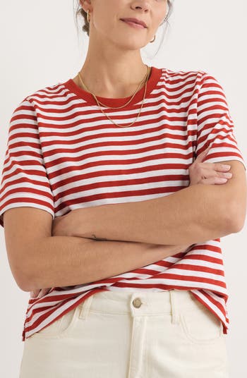 Cut in a boxy profile ideal with your high-waist looks, this striped organic-cotton T-shirt will be at the top of your rotation.