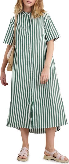 A relaxed-fit easy-to-wear shirtdress rendered in bold stripes and crafted from airy organic cotton is a staple piece every closet craves.