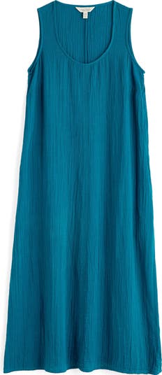 Softly crinkled organic cotton brings effortless comfort and style to this sleeveless midi perfect for warmer days.