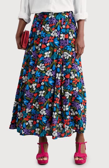 Lightweight viscose is subtly pleated for swishy movement in this floral-print maxi skirt that's extremely versatile and ready for anything.