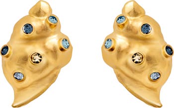 Golden conch shells whisper the song of the sea at your lobes in these sculptural and whimsy-filled drop earrings.
