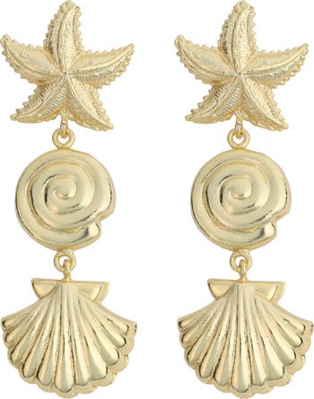 Complete your look with the seaside-inspired charm of these fanciful drop earrings plated in 14-karat gold.