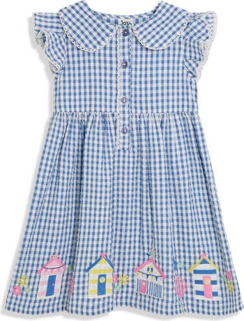 Whimsical embroidery and flutter sleeves add even more charm to this cotton gingham dress that will have baby ready for an impromptu photo op.