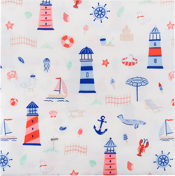 Set sail for a summer of splashes, sandcastles, and sea breezes with our Seaside Collection! Featuring charming coastal illustrations, these Seaside Large Napkins bring nautical fun to your beachside picnic or sunny-day celebrations!