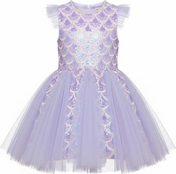 With its dreamy pastel glow and sparkling scale pattern, this magical dress is made for little sea queens who love to shine