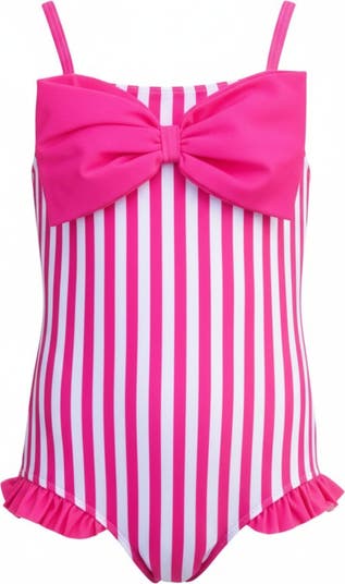 Make a splash this season with the dreamiest statement swimsuit for your little trendsetter. Designed with bold resort vibes and signature Mia Belle charm, this striped one-piece features an unforgettable oversized bow she’ll instantly fall in love with.