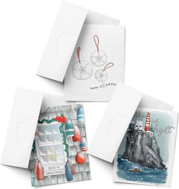 Season's Greetings, Happy Holiday Sand Dollar, Merry and Bright Winter/Holiday/Christmas Greeting Card Pack Sets