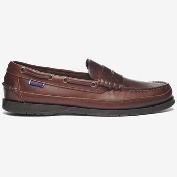 Built like the best classics in nautical footwear, these long-lasting slip-on beefroll penny moccasins are made of hot stuffed leather conditioned with a rich combination of oils and waxes, then hand-sewn with the finest craftsmanship: they are waterproof and enhanced by a natural polish quality, and feature a canoe moc construction, leather sock lining and non-marking anti-slip siped soles in a cool innovative dark-brown rubber to offer stable grip in all weather conditions. The “Sloop” mocs were created to enjoy sailing on Sloops, little agile sport and fun sailing boats with a single mast and a lenghtwise rig.