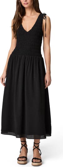Light and sun-ready, this breezy sundress features a flattering V-neck and a smocked bodice that shapes comfortably to your frame. Delicate shoulder ties and a flowy midi skirt complete the effortless, warm-weather silhouette.