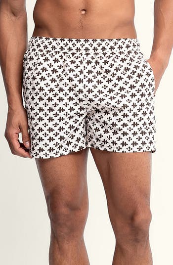 Bring retro-beach vibes to your next day of soaking up the sun in these shorter-inseam swim trunks made from soft, lightweight nylon that wicks moisture and dries quickly. Their sleek design and soft-touch fabric make them a great choice for casual wear, too.