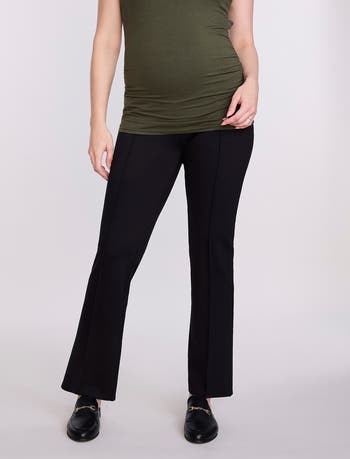 These full-length maternity pants are crafted from soft ponte fabric with a Secret Fit Over the Belly panel that stretches for support and comfort throughout pregnancy. Designed with a classic bootcut leg, they offer a polished look that easily transitions from work to everyday wear.