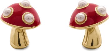 Polished stud earrings colored with enamel and lustrous faux pearls take the shape of a mushroom to bring the brand's beloved whimsy to your lobes.