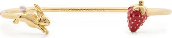 Play up your style with this polished cuff featuring eye-catching end points shaped like a strawberry and cute leaping bunny.