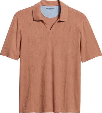 Frond-textured jacquard in a soft, lightweight and breathable knit enhances the retro character of this weekend-ready polo featuring a classic johnny collar.