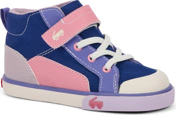A high-top silhouette offers ankle support for your little one in this podiatrist-approved sneaker with lightweight, flexible construction and a molded insole.