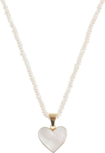 Seed Pearl Necklace with Mother of Pearl Heart Pendant