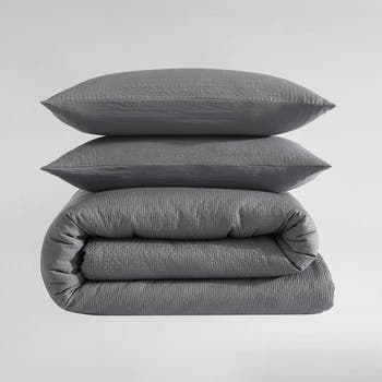 With soft seersucker texture on one side and washed microfiber on the other, this duvet cover set is a cozy and inviting addition to your bedroom retreat.