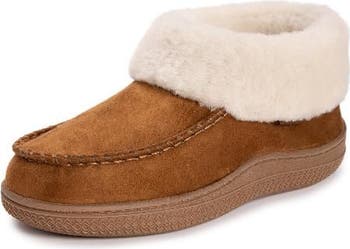 Experience comfort and Style in Muk Luks Women's Salah Slipper, featuring a durable indoor/outdoor sole, non-slip thread bottom, and a cozy faux fur cuff.
