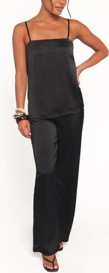 Whether worn together or paired with other favorite pieces, this chic longline satin camisole and matching wide-leg pants will get worn on endless repeat.