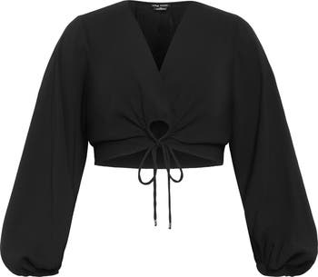 Feel your fiercest in this cropped top featuring a surplice V-neck that dips down to keyhole with delicate ties.