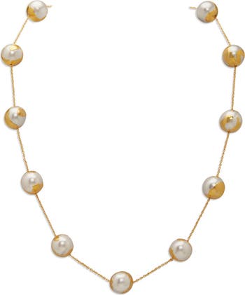 - Material: 22k gold-plated brass with baroque shell pearls