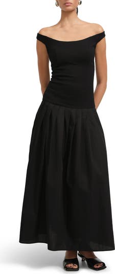 Channel Old Hollywood glamour in this off-the-shoulder dress complete with an impeccably pleated skirt.