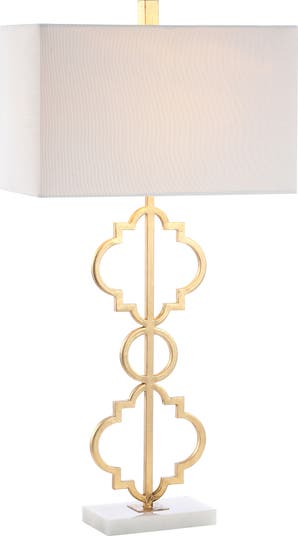 A Mediterranean-inspired classic, this stylish table lamp features ogee tile forms stacked into a column, finished in gold. Standing tall at 32", this elegant lamp is topped with a rectangular shade to suit traditional and modern interiors.