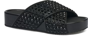 Step up your style with our SELINA Sandal — where edgy glamour meets all-day comfort. Featuring bold black-on-black stud embellishments across crisscross straps, this sandal adds instant attitude to any outfit. The contoured footbed offers cushioned support, while the platform sole adds a subtle lift without sacrificing ease of wear. Perfect for off-duty days, vacation vibes, or nights out with a twist, this standout sandal is your go-to for elevated casual looks.