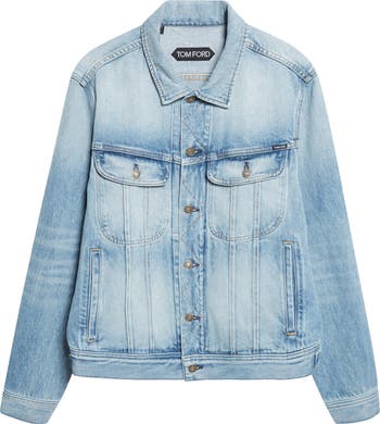 Tom Ford offers a refined take on an iconic look with this selvedge-denim jacket featuring panelled construction accented with tobacco topstitching.