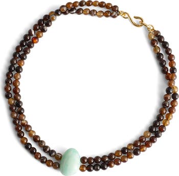 Featuring a semiprecious-stone statement charm and beads, this choker necklace makes a cool addition to any necklace stack.