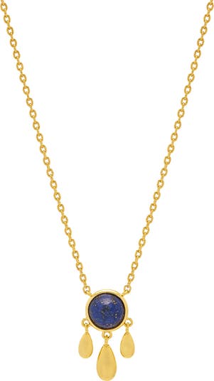 Golden droplets dangle from a bezel-set semiprecious-stone pendant, bringing rich color and shine to this delicate chain necklace.