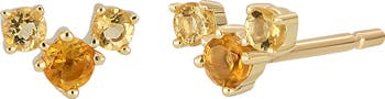 A trio of brilliant round-cut semiprecious stones light up these handcrafted stud earrings that bring vibrant color to your lobes.