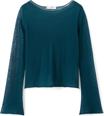 Flared sleeves lend a boho-chic feel to this semisheer, delicately knit top that's versatile for layering or wearing on its own.