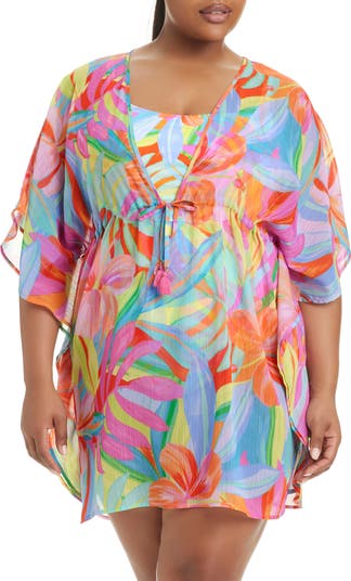A drawstring waist allows you to customize the flowiness of this beachy cover-up caftan that's lightweight and semisheer.